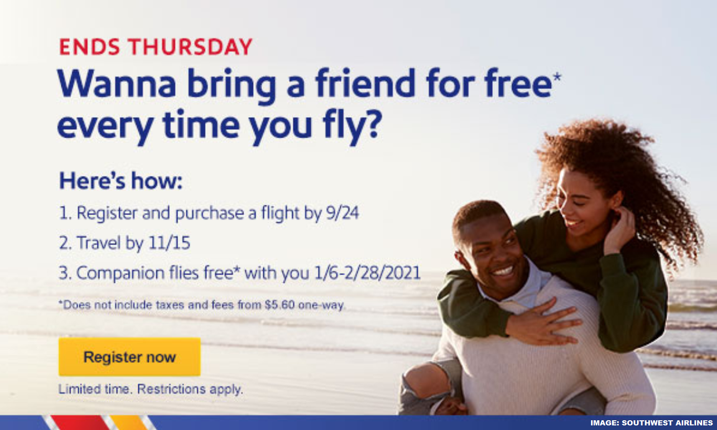 - Well, it could get you more than halfway to earning the Southwest Companion Pass, one of the best deals in travel. The companion pass is a buy one, get one on Southwest anywhere you fly. You can check out my past post.
